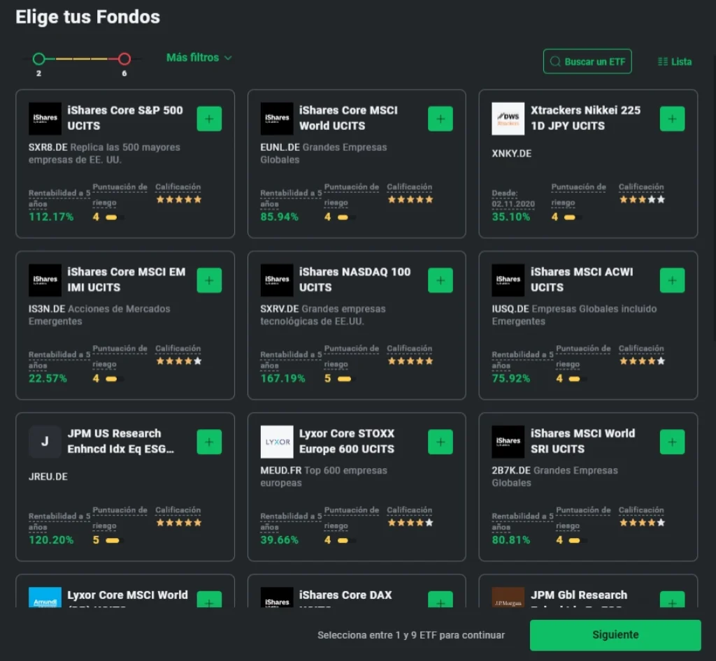 Ejemplo con algunos de los ETFs que ofrece el Grupo XTB a través de su plataforma y puedes agregar a tu plan de inversión: