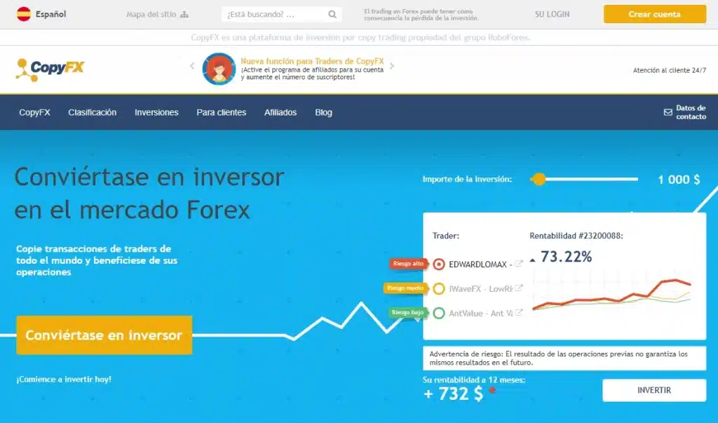 En realidad, CopyFX es una plataforma de copy trading perteneciente al grupo RoboForex (un bróker de Forex).