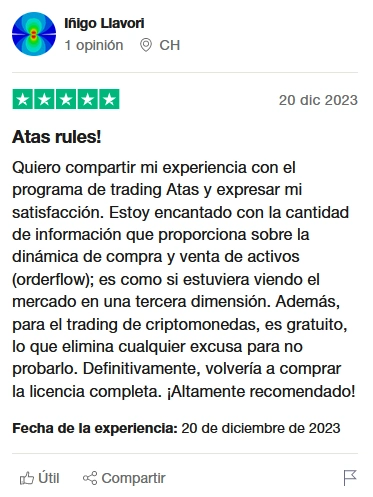 ATAS tiene una comunidad de usuarios en línea activa que comparten sus experiencias con la plataforma. Las reseñas de ATAS son generalmente positivas, con los usuarios elogiando la plataforma por sus características únicas, su facilidad de uso y su efectividad para ayudarlos a tomar mejores decisiones de trading.