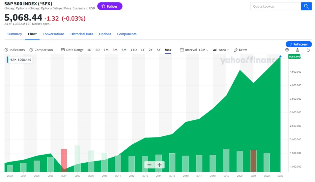 - El S&P 500 (las 500 grandes empresas de EE. UU.) ha crecido aproximadamente un 10,86% anual desde 1957 incluyendo dividendos.