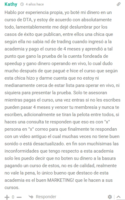 Pero he mirado en foros y redes, y la foto que sale no es la de un único “escándalo definitivo”, sino más bien la de una escuela que fue ganando mala reputación por precio, marketing y utilidad real; y cuyo fundador fue luego asociado cada vez más con SpeedUp Trader (una empresa de fondeo de las peores… otra supuesta estafa de Arrambide según los usuarios).