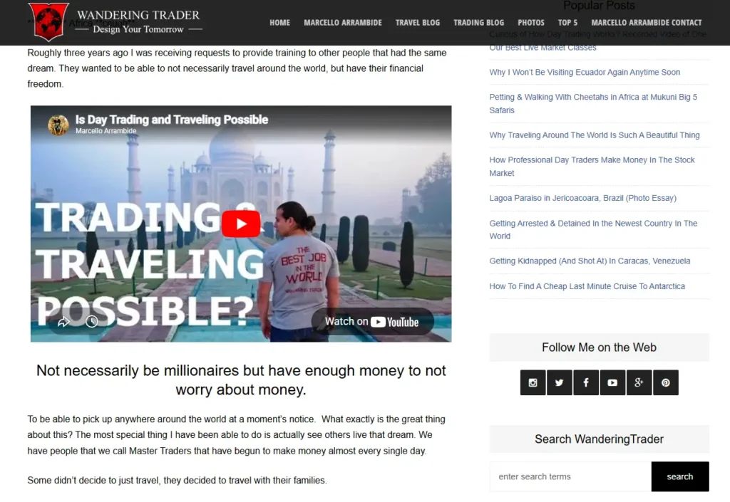 Yo mismo he criticado la imagen de trader exitoso que Marcello vendía: viajes, videos aspiracionales, playas paradisíacas, trabaja solo 2 horitas al día, etc.