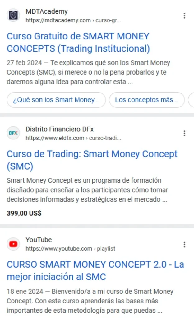 Como puedes ver en la siguiente captura de pantalla cursos de smart money no faltan.